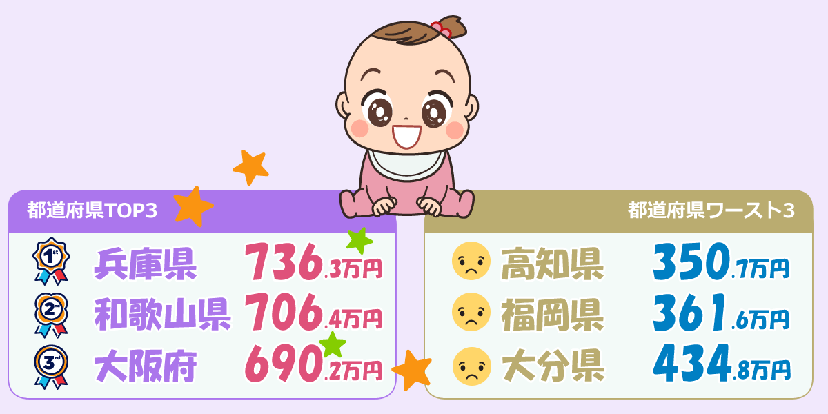 2025年発表のデータを見ると、助産師の年収は都道府県によって大きな差があり、全国平均の580万円台に対し、地域ごとの実情が鮮明に表れています。とくに賞与の額が全体の年収に与える影響が大きく、待遇の良い地域とそうでない地域の差が顕著です。